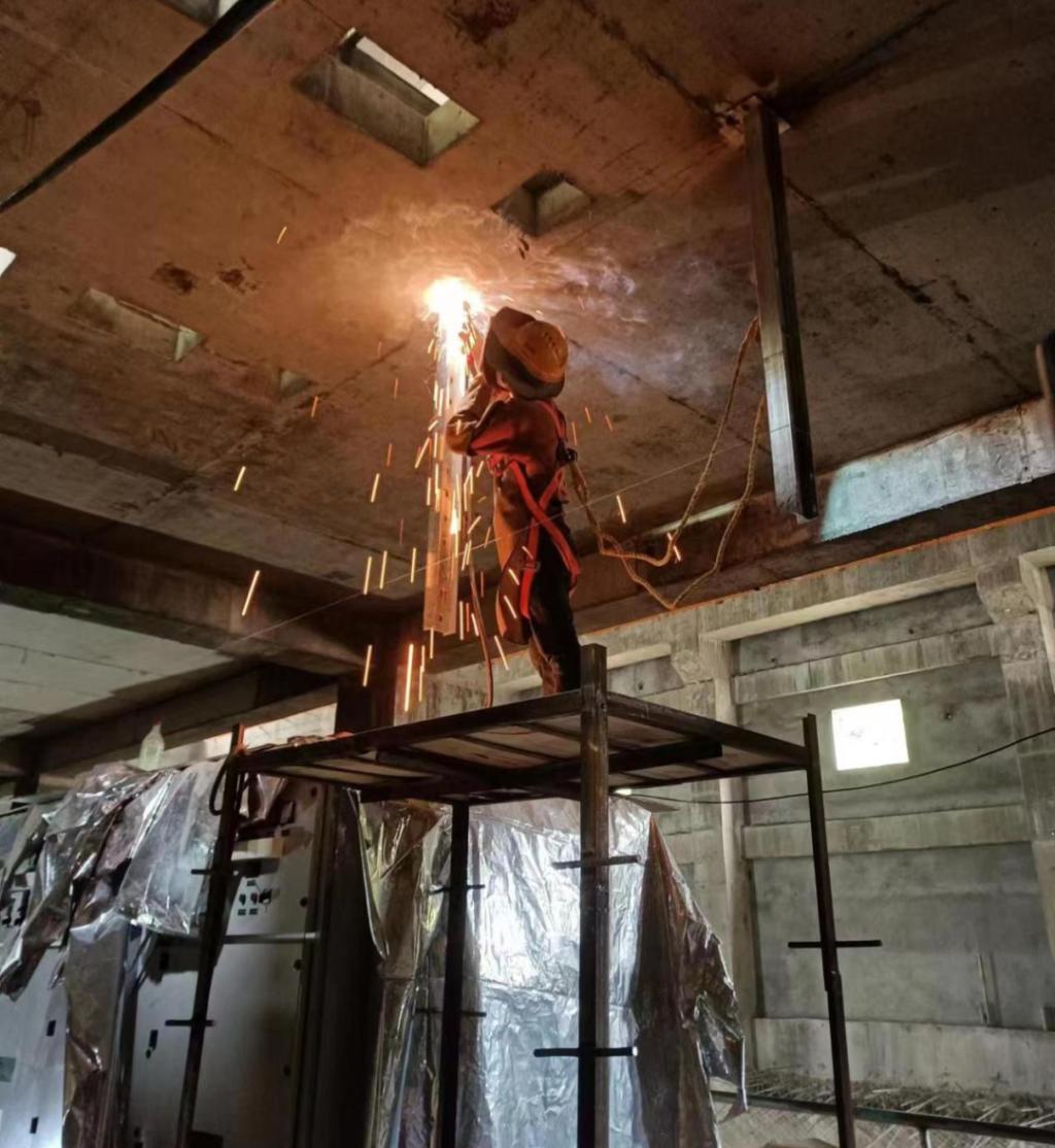 ◆尊龙时凯人生就搏国际尼泊尔山涧水电项目职工正在进行电缆桥架安装工作